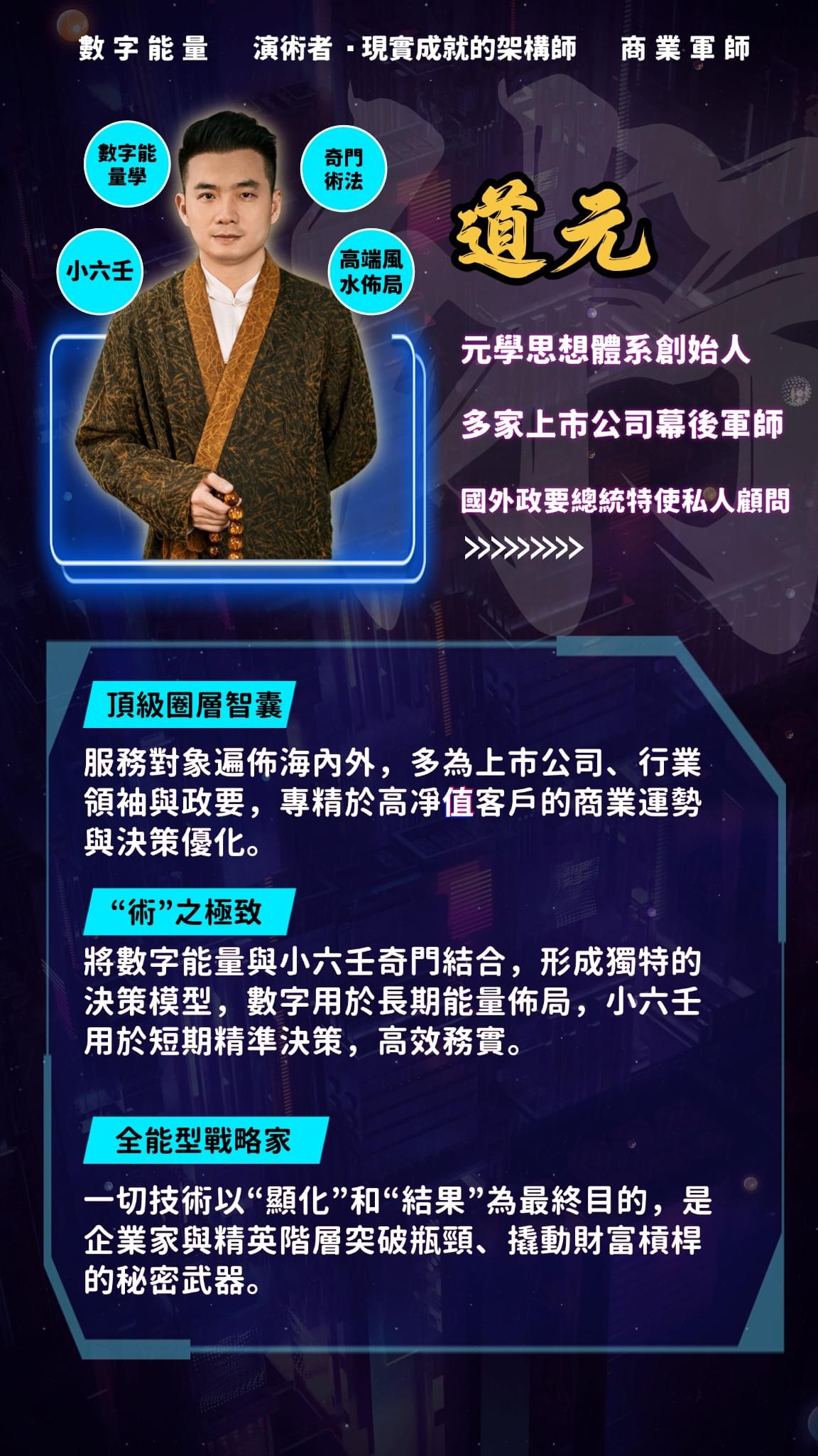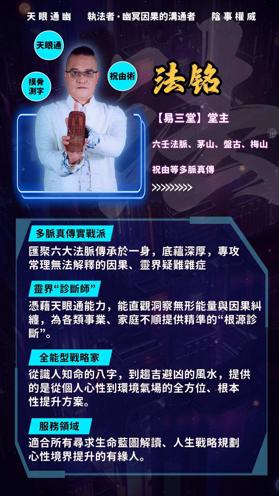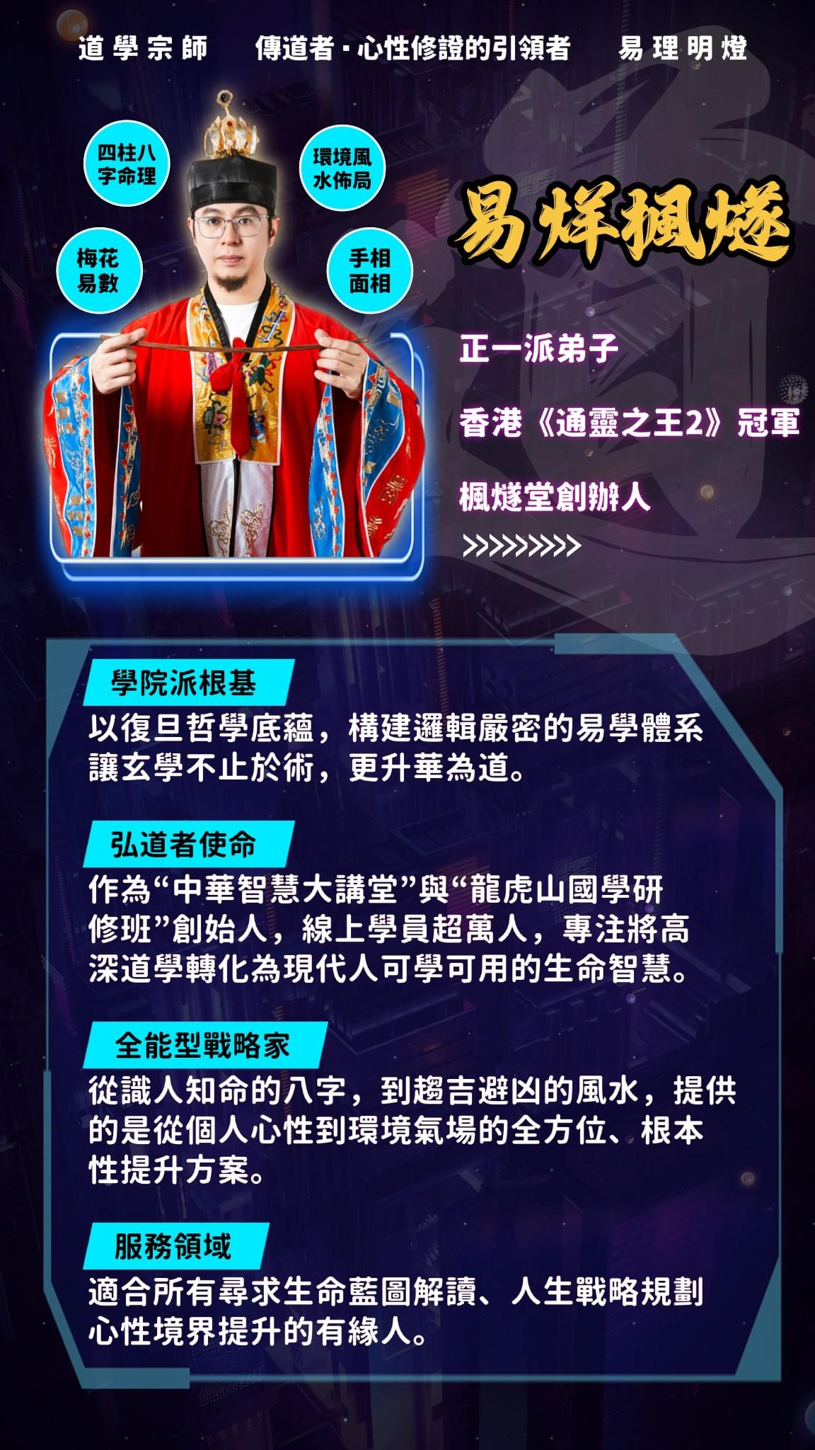 - √ 正統道教背景,正一派弟子